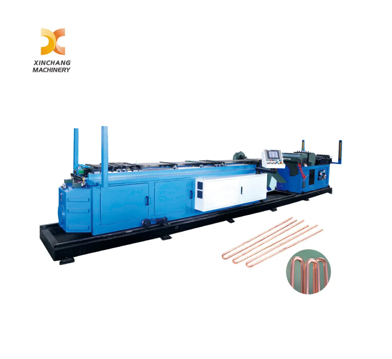 the equipment is used for opening, straightening, chipless cutting and bending coil copper pipe into set length U shape pipe which is also called hairpin pipe; mainly applied to the auto production of long U pipe in air-condition condensers and evaporators.